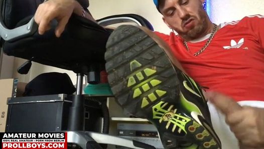 Pokazujem svoja velika prljava stopala, svršavam i svršavam