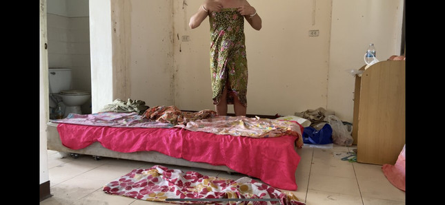 Trans djevojka piša i svršava preko skupe satenske haljine