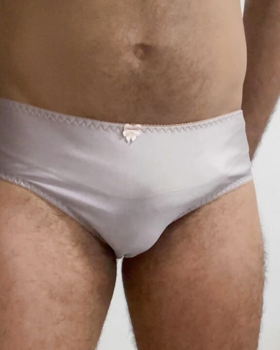 Crossdresser u svilenkasto bijelom donjem rublju (thlin1030864)